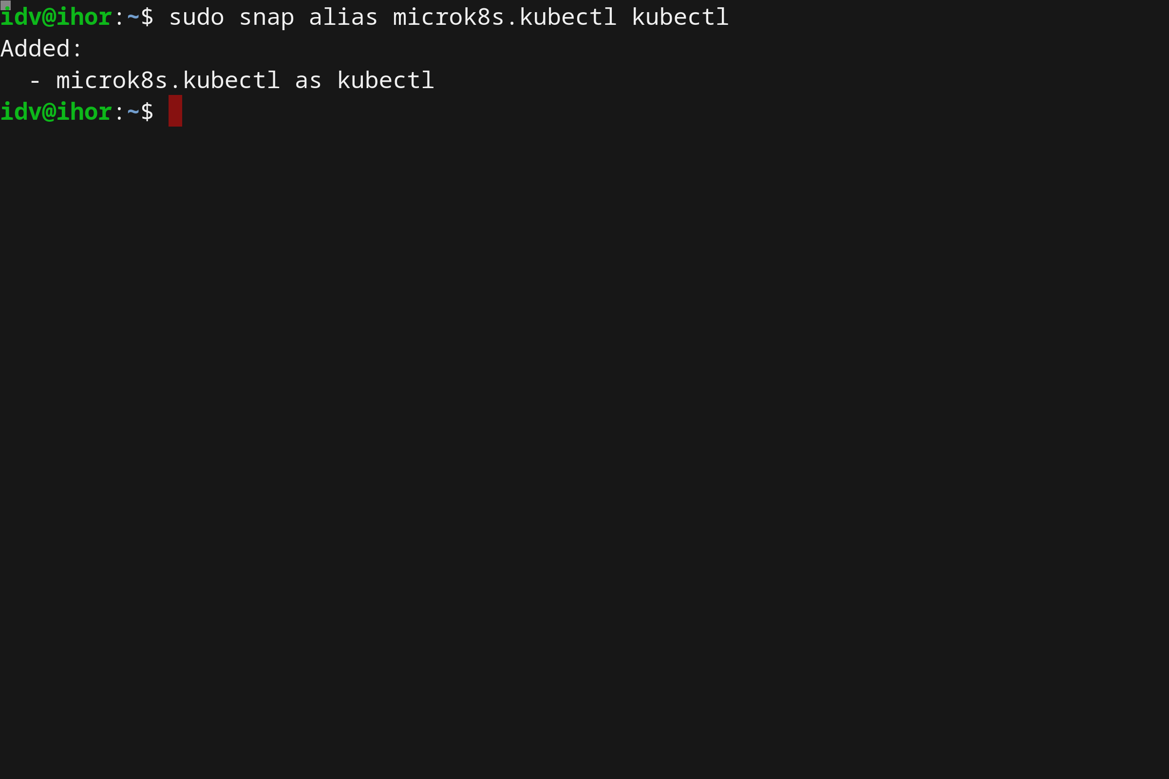 This will allow you to simply use kubectl after. You can revert this change using the snap unalias command.